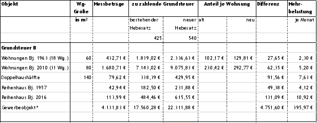 Für die Grundsteuerpflichtigen und die Mieterinnen und Mieter bedeutet die Erhöhung des Grundsteuerhebesatzes auf 540% folgendes: