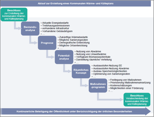 Die Vorgehensweise der Erstellung sowie die Inhalte des Wärme-und Kälteplans sind in §7 klar vorgegeben und werden im Folgenden beschrieben (siehe auch Abbildung unten).