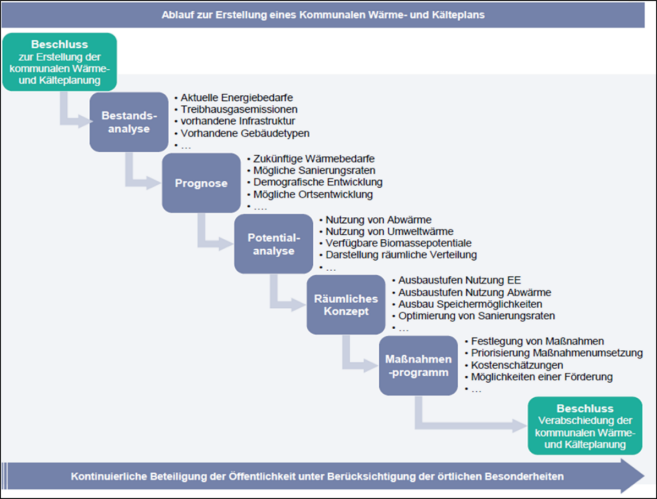 Die Vorgehensweise der Erstellung sowie die Inhalte des Wärme-und Kälteplans sind in §7 klar vorgegeben und werden im Folgenden beschrieben (siehe auch Abbildung unten).