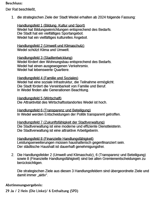 - Der Rat der Stadt Wedel hat am 22.02.2024 die neu formulierten strategischen Ziele für Wedel für die Zeit von 2024 bis 2028 beschlossen (BV/2023/158 - –1).